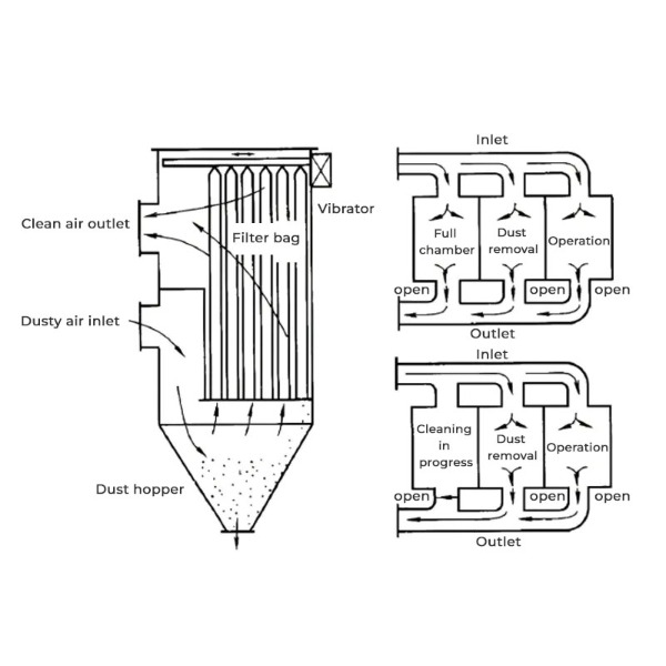 - Meicníocht glantacháin: Ba cheart go mbeadh córas glantacháin scaird bíog iontaofa ag an mbailitheoir deannaigh a úsáideann aer comhbhrúite chun an deannach a shéideadh ó na málaí scagaire, rud a choscann clogging.