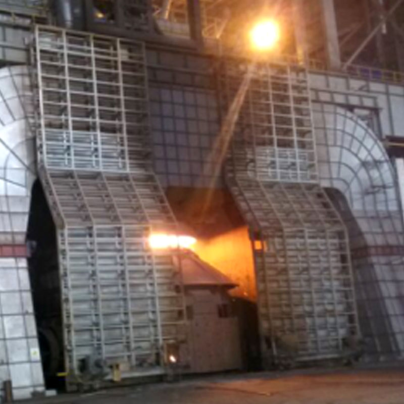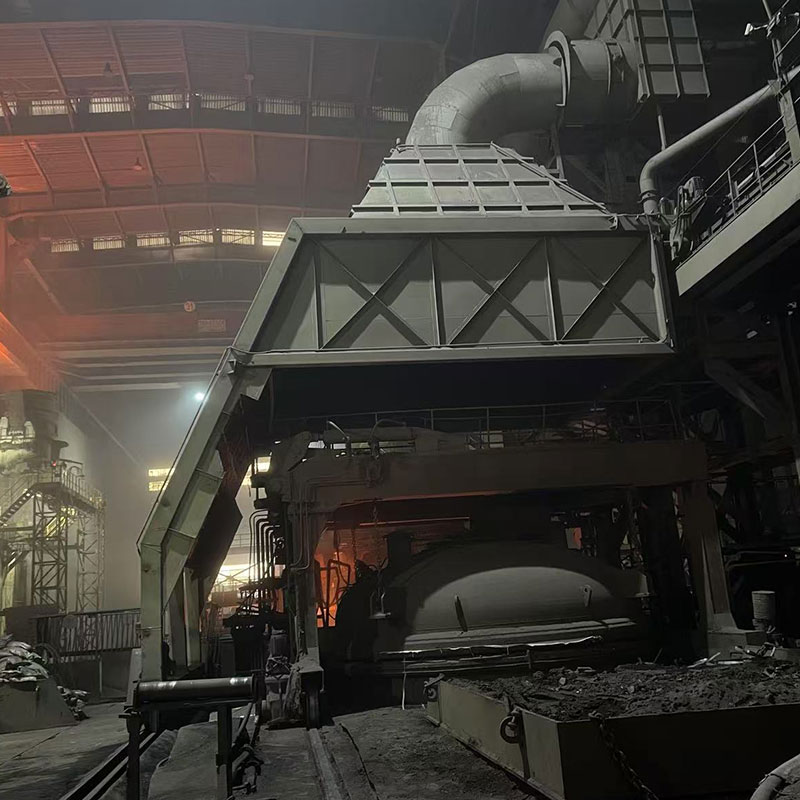Tá an converter front capture hood typically adopts a semi-enclosed or movable structure, allowing for dynamic coordination with the converter's furnace mouth to accommodate the converter's tilting operation. In practice, the hood covers the furnace mouth area, creating a stable negative pressure environment through a combination of blowing and suction technology. This allows for the accurate capture of transient high-volume, high-concentration flue gases, particularly iron-containing fumes splashed during iron charging. Furthermore, because converter flue gas temperatures are extremely high (instantaneously exceeding 1400°C) and are accompanied by iron slag splashing, the capture hood is lined with refractory castables and incorporates a water-cooled interlayer structure to enhance its resistance to thermal radiation and mechanical impact, thereby extending its service life.